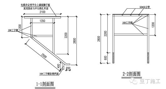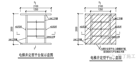 井道内架体采用型钢钢管脚手架架体,脚手架每层与周边剪力墙刚性连接,从底部至顶部连续设置剪刀撑。