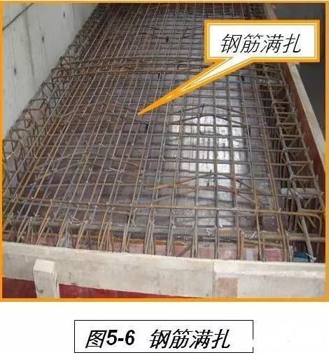 钢筋应满扎,扎丝规格不小于22#(钢筋直径大于18mm时不小于20#),扎丝头向内(见图5-6)