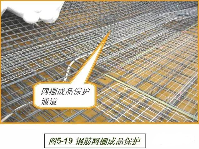 楼面钢筋绑扎过程至混凝土浇注期间,应架设施工通道,施工通道不得影响楼面钢筋。