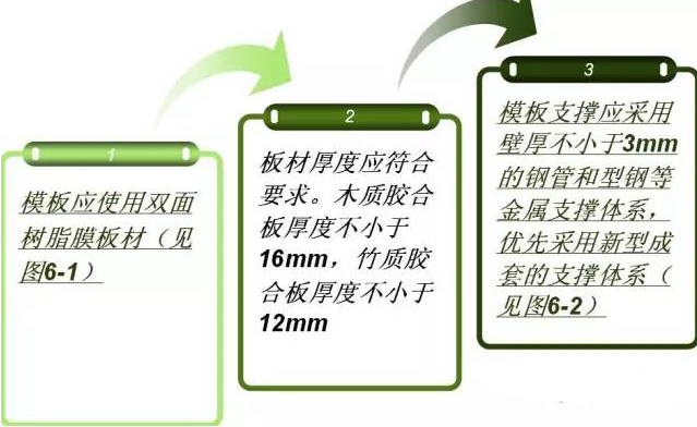 除严格按照模板安装方案检查外,应对模板制作安装和拆除的质量严格进行检查验收,泼水检查不得形成水线。施工过程中应对材料、模板及其支架的安装、拆除等进行跟班检查和指导。完成后随机对模板拼装、支撑等抽查5个点,结果应符合要求。