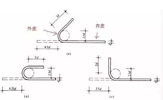 钢筋受弯曲后,在弯曲处的内皮缩短而外皮伸长,只在中心线处才保持不变的尺寸。实际上对成型好的钢筋一般是量外皮的。因此,下料长度与要根据图上式样的尺寸加以调整。