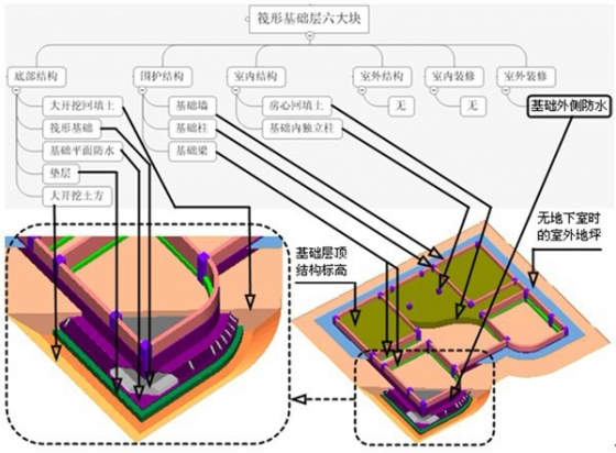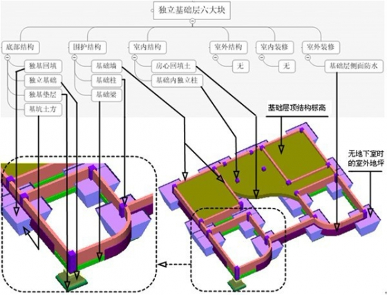 综合上述,如果我们取消层的概念,将整个建筑物的六大块所包含的构件总结如下(如果把基础层的底部构件和其他项目加上实际上是八大块):