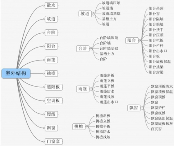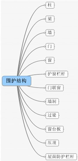 (六)室外装修构件汇总:建筑物室外装修所包含的构件见图3.30: