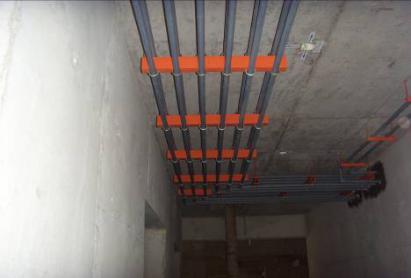 2#楼走道内PP-R给水管道的支架,在施工前须在砼结构下弹控制线,保证支架在一直线上