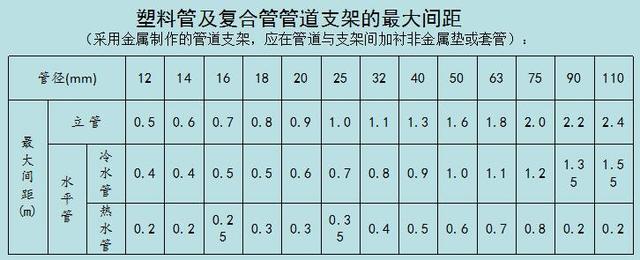给水立管距墙:管径32mm以下距墙25~35mm;管径32~50mm距墙30~50mm;管径75~100mm距墙50mm;管径125~150mm距墙60mm。