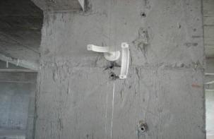 单根UPVC排水立管支架安装, 上下采用铁丝作垂直吊线