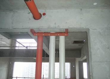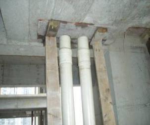 UPVC排水立管孔洞的吊模全部采用木方作支撑,保证砼结构板面下部平整