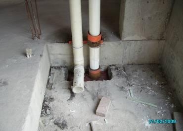 UPVC排水立管在一次浇砼后进行蓄水试验