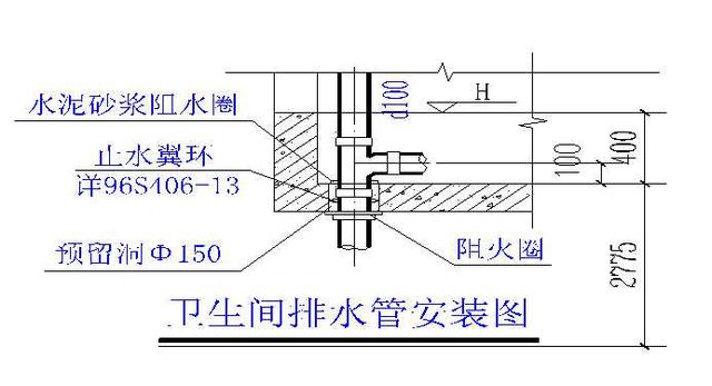 c.排水立管和横管均需设置伸缩节,立管上每层,横管上每4米设伸缩节一个。