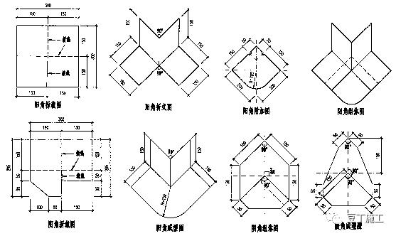 阴阳角(此处的阴阳角专指三维交叉部位)在防水层施工中,数量诸多,也是防水层薄弱的部位之一,该处的通常做法是由施工作业人员按照下图方式现场裁剪和安装: