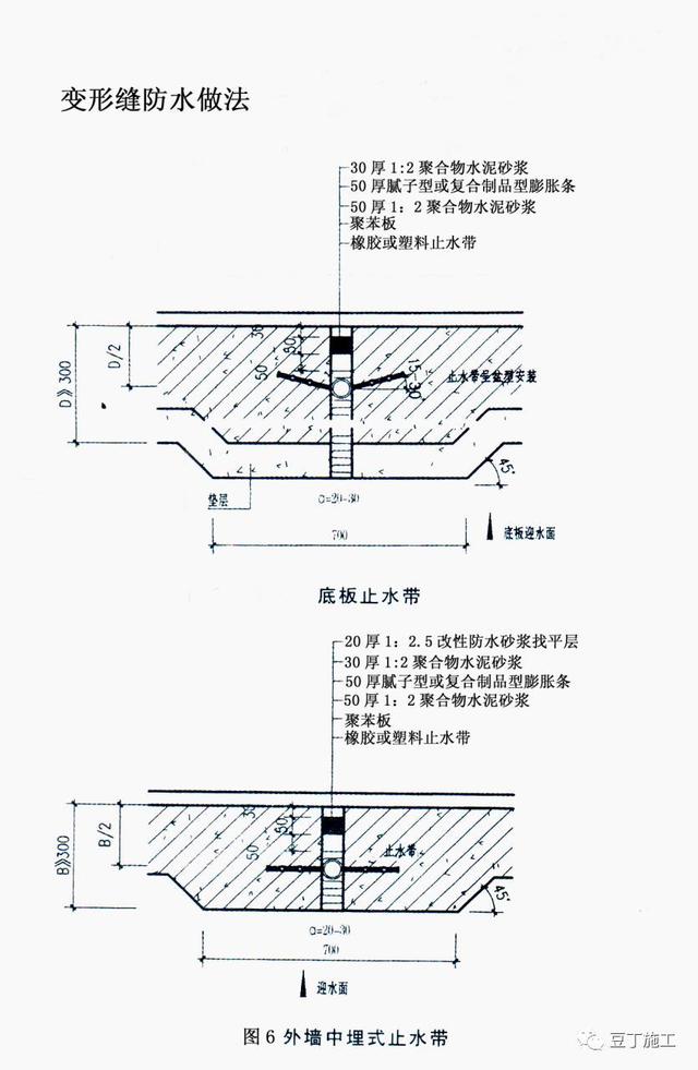 4、变形缝橡胶止水带必须按要求在支模及浇筑混凝土前安装完成,浇筑混凝土时必须振捣密实。