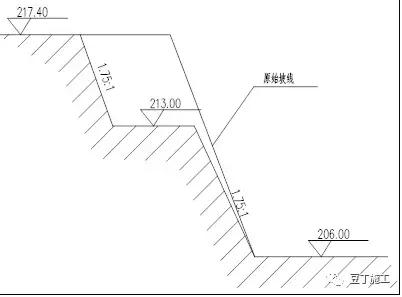 A区:该区域支模架基础位于8#楼北侧边坡上,该边坡坡度大,边坡高度较高,其边坡土体的稳定性直接影响到了支模架的支设质量和施工安全。根据现场边坡情况对A区划分三个施工段,即217m标高为A-1段、206m~217m边坡段为A-2段、206m标高处为A-3段。其中边坡段(A-2段)基础开挖成如下图的阶梯形,阶梯按照两排杆进行设置平台宽度,平台宽度为2000mm,且在阶梯形中各坡面的放坡系数不得大于1:1,并在开挖过程中采用挖机进行夯实,夯实系数不的小于0.93,夯实后立即采用100厚C20混凝土进行封闭。A-1段、A-2段采用挖机对该部分土体进行开挖填平,并在开挖过程中采用挖机进行夯实,夯实系数不的小于0.93。架体搭设前在架体基础底部铺设502503000mm脚手板,以保证脚手架的整体性能。