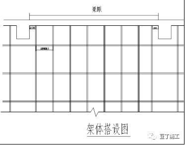 架体搭设时按照从梁底两侧200mm处进行排杆,根据梁跨的跨度进行设置架体底部的立杆的数量,最终确保架体底部立杆的间距不得大于立杆设置间距。具体设置方法如下:假定架体梁跨为lm,扣除梁两侧间距各200mm,按照立杆间距d进行计算排杆数量,即(l-0.4)/d所得的整数商n,则板跨下部立杆数量就为n+3,立杆间距再根据下部杆的数量n+1进行均分,即立杆的间距为(l-0.4)/(n+1)。