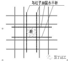 11)对A2地块各区域高支模架体,由于结构较高且单一,为加强高支模架体与结构有效嵌固连接成一整体,加强支模架体的整体稳固性,在部分结构柱分节施工完成并拆模后,将架体每步与柱子相连加固,抱柱水平杆间距为1500mm,如下图: