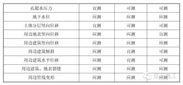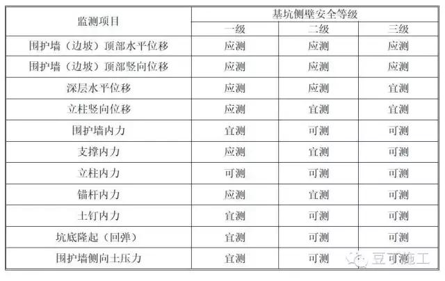 建筑基坑支护工程监测项目(表格出自建筑基坑工程监测技术规范(GB50497))