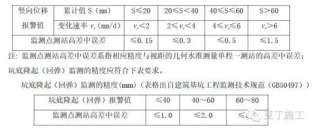 竖向位移监测精度(mm)(表格出自建筑基坑工程监测技术规范(GB50497))
