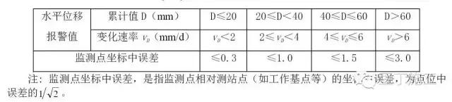 水平位移监测精度要求(mm) (表格出自建筑基坑工程监测技术规范(GB50497))