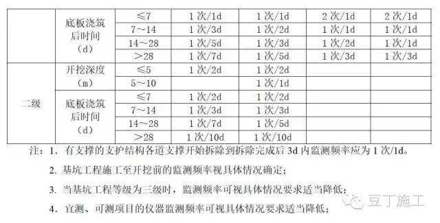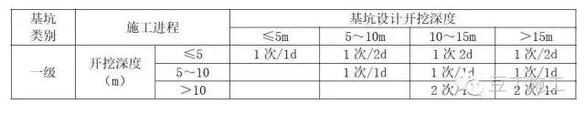 现场仪器监测的监测频率(表格出自建筑基坑工程监测技术规范(GB50497))