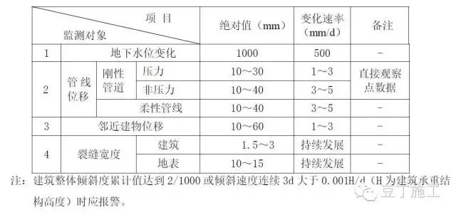 建筑基坑周边环境监测报警值(表格出自建筑基坑工程监测技术规范(GB50497))