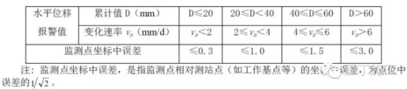 水平位移监测精度要求(mm) (表格出自建筑基坑工程监测技术规范(GB50497))