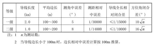 2、当采用导线及导线网作为场区控制网时,导线边长应大致相等,相邻边的长度之比不宜超过1:3,其主要技术要求如下: