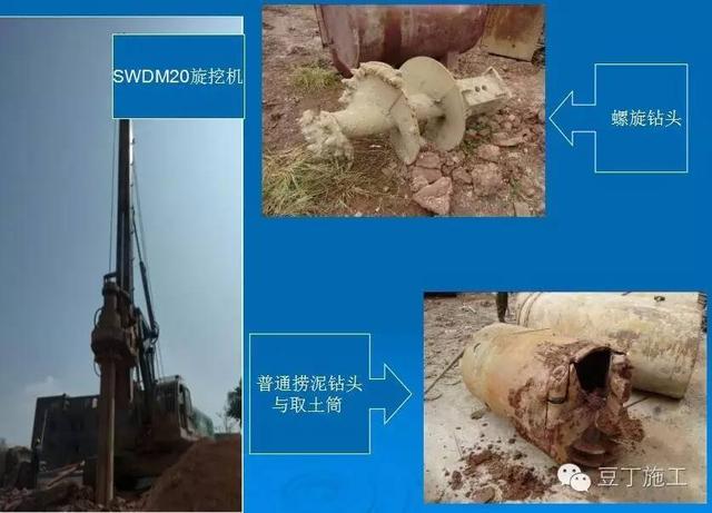 旋挖钻机主要适用于土层、砂层,以及较松散的、粒径较小的卵砾石层,在粘性土层钻进效果最佳,而在硬岩层、较致密的卵砾石、孤石层施工比较困难,并容易发生孔内事故和机械事故,体现不出旋挖钻进的优越性。