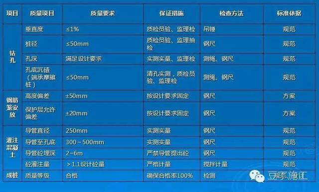 旋挖钻孔灌注桩质量标准及控制措施一览表