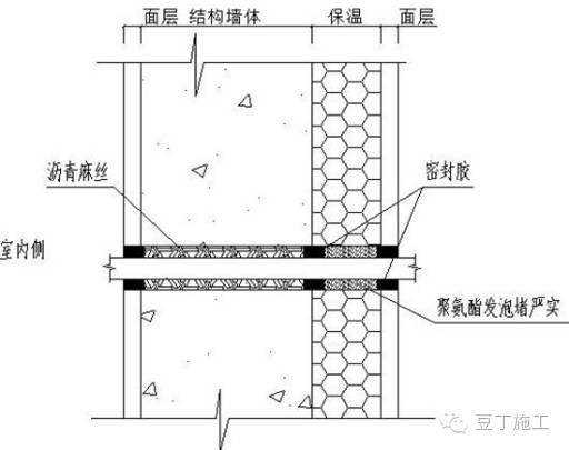 工艺流程:缝口处理填入填充料抹底层灰粘贴防水卷材外保温施工安装定型成品挡水板打密封胶外饰面层施工。
