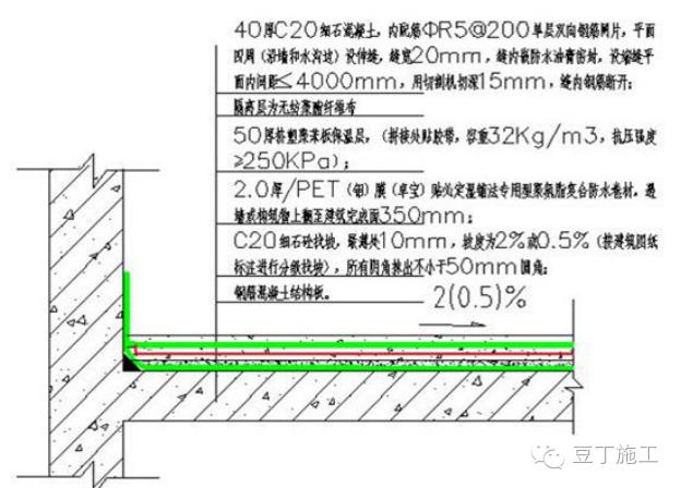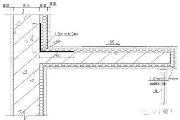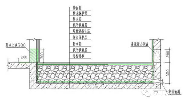 工艺流程:钢筋混凝土结构层找坡层防水层闭水试验保温层隔离层刚性保护层