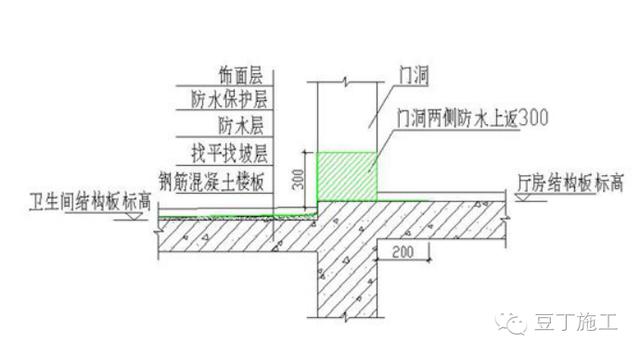 1.厨房、卫生间、阳台等分隔墙或外墙如是砌体墙,墙底做200高的混凝土坎。