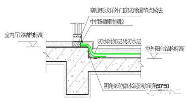 1.在窗楣上口做成品滴水线,成品滴水线应嵌贴密实、顺直,在窗台上做向外大于10%排水坡度,高差大于20mm。