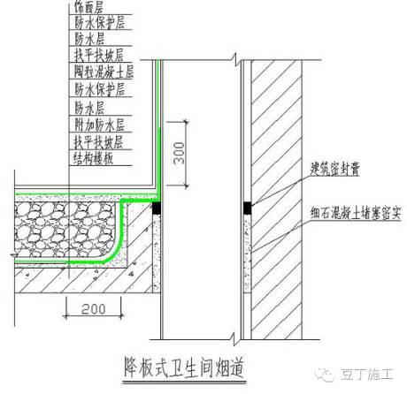 2.下沉式卫生间设侧排地漏,便于排回填陶粒内的集水。
