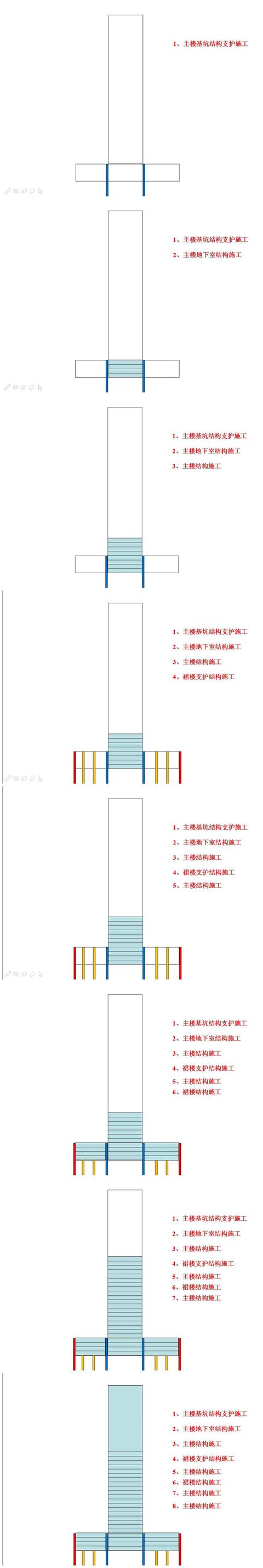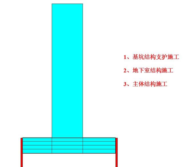 顺做法是遵循先深后浅的原则,地下室全部采用从下至上的施工步骤,地下室结构完成后再开始上部结构施工。
