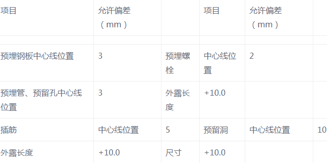 (3)固定在模板上的预埋件、预留孔和预留洞均不得遗漏,且应安装牢固,其偏差应符合表2.-1的规定: