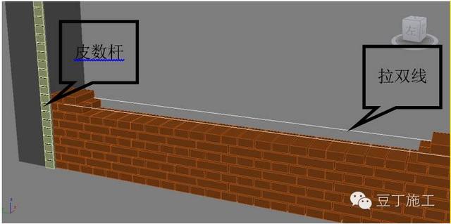 根据立在墙端或转角的皮数杆砌筑两端墙体,并在之间拉双准线,砌筑中间砌块时根据准线控制灰缝及水平。