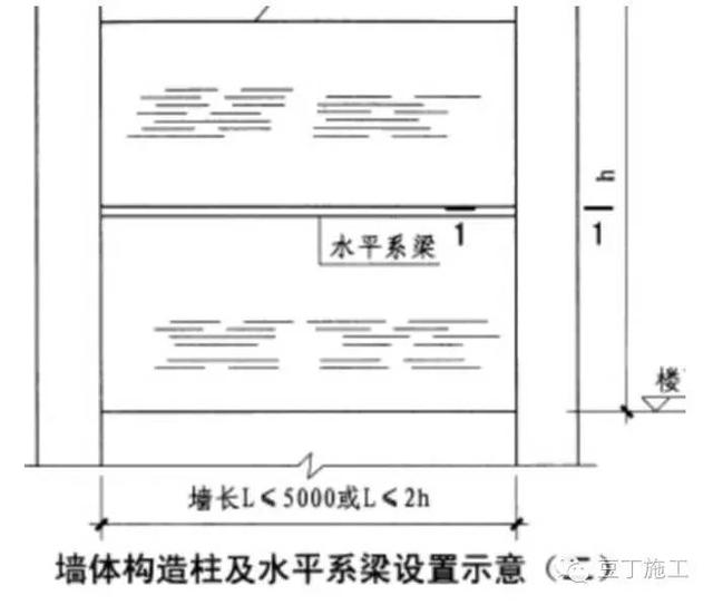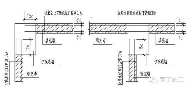 d、按照规范及图纸要求,填充墙长度超过5m或当墙长度超过层高的2倍时,在墙体中间沿墙长每隔4000mm设置构造柱。填充墙端部无翼墙形成自由端时设置构造柱,门窗垛的墙体长度小于等于120mm时设置构造柱。填充墙上门窗洞口宽度大于2.1m时设构造柱,尺寸为墙厚150mm,配筋412。