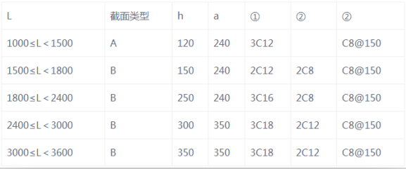 a、过梁:墙门窗洞口顶无梁时需设钢筋混凝土过梁,当预留洞口宽度超过400mm时也需设置过梁。过梁钢筋采用后植筋方式,植入墙柱内15d(d为钢筋直径)。过梁规格、配筋详见图8-2及表8-1所示:
