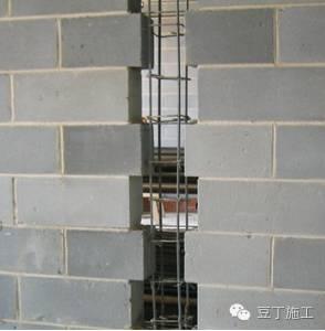4)墙转角等未设置构造柱时,将砌块分皮咬槎,交错搭砌。