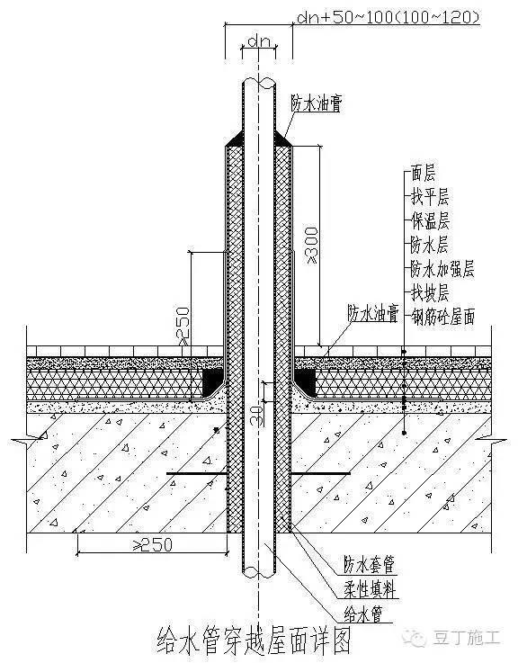 套管内非金属管道打毛处理、金属管道增加挡圈。