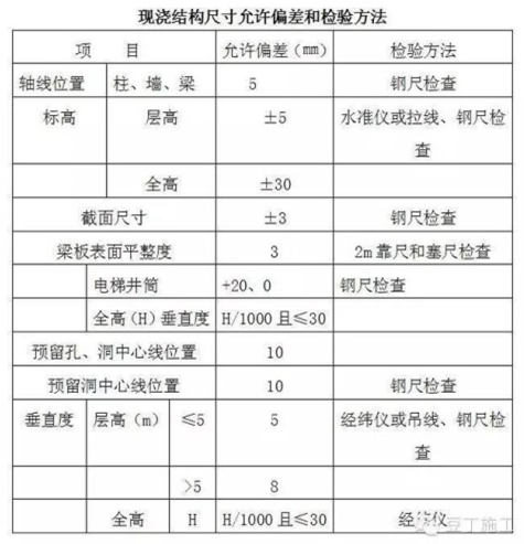 注:检查轴线、中心线位置时,沿纵横两个方向量测,并取其中的较大值。