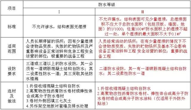 2、地下室防水等级及适用范围