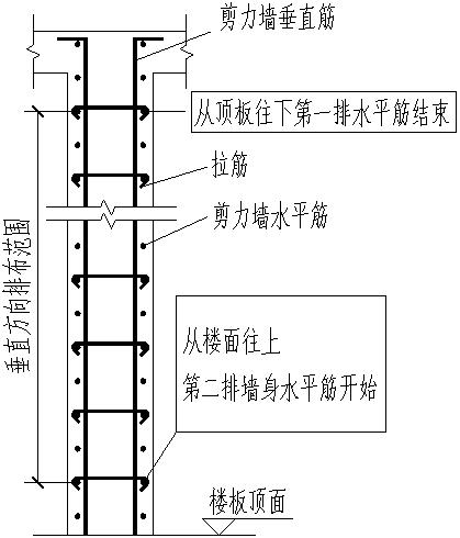 【答】在楼层中竖向范围内,从楼面往上第二排墙身水平筋开始,至顶板往下第一排墙身水平筋结束。