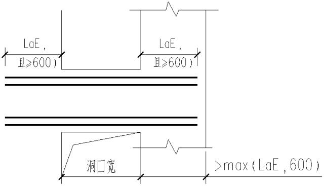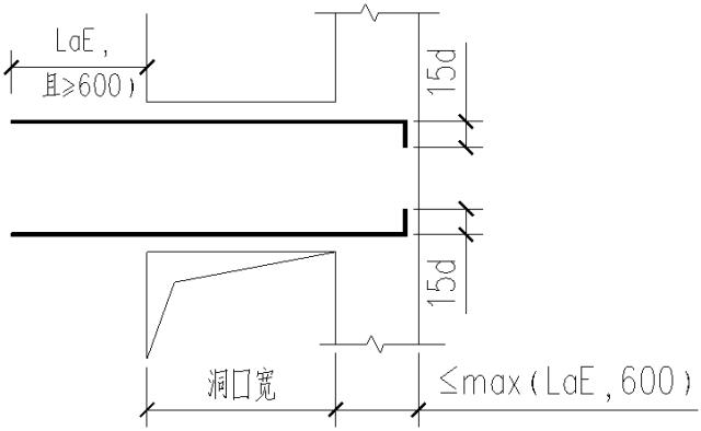 (2)当墙端部不够长时,弯锚。即墙端部长度max(LaE,600)时,伸至墙端部对边弯折15d。