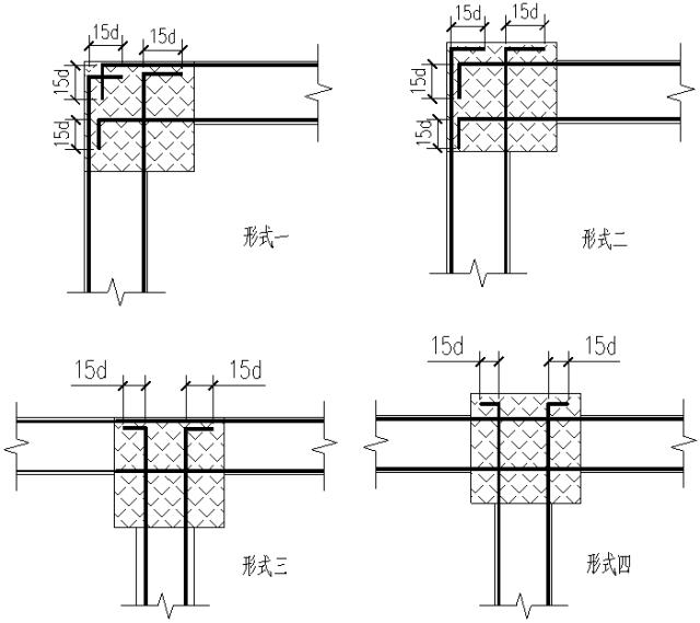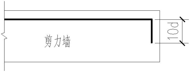 (2)当剪力墙厚度10d,剪力墙水平筋在墙端部连续通过,在侧壁与水平筋绑扎搭接LlE。