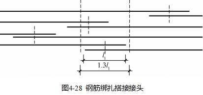 同一构件中相邻纵向受力钢筋的绑扎搭接接头宜相互错开,如图4-28所示。