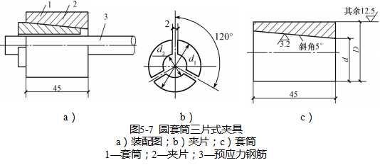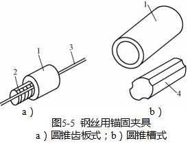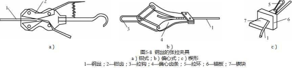 夹具本身须具备自锁和自锚能力,自锁即锥销、齿板或楔块打入后不会反弹而脱出的能力;自锚即预应力筋张拉中能可靠地锚固而不被从夹具中拉出的能力。同时,先张法用夹具的静载锚固性能,应符合Ⅰ类锚具的效率系数a大于或等于0.95的要求。同时,夹具还应具有安全的重复使用性能。