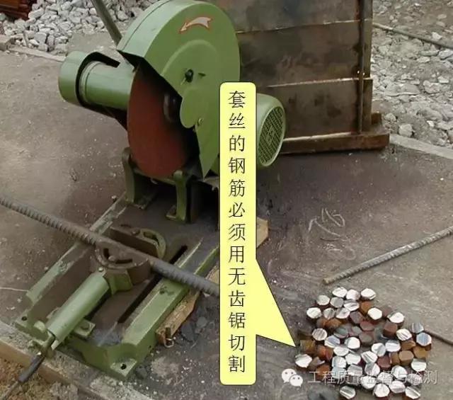 一般钢筋采用钢筋切断机进行切断加工,定位筋与需套丝的钢筋必须用无齿锯切割。