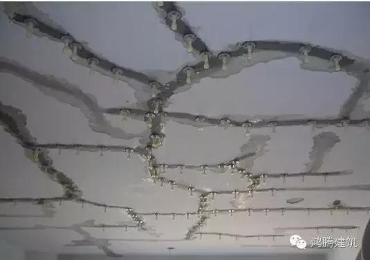 3.角部裂缝:在房间的四角出现的斜裂缝,板上皮居多。