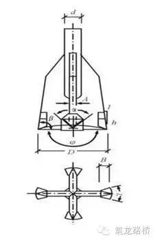 ②冲击钻头形式有十字形、工字形、人字形等,一般常用十字形冲击钻头(图2-23)。
