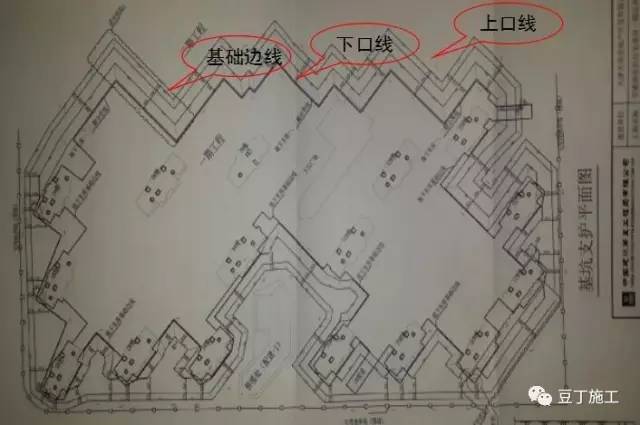 工艺说明:土方开挖前绘制土方开挖图。开挖图要标示出基坑上口线、下口线、垫层边线、基础边线、基底标高、深挖部分标高上下口线,以及所有线的平面位置。